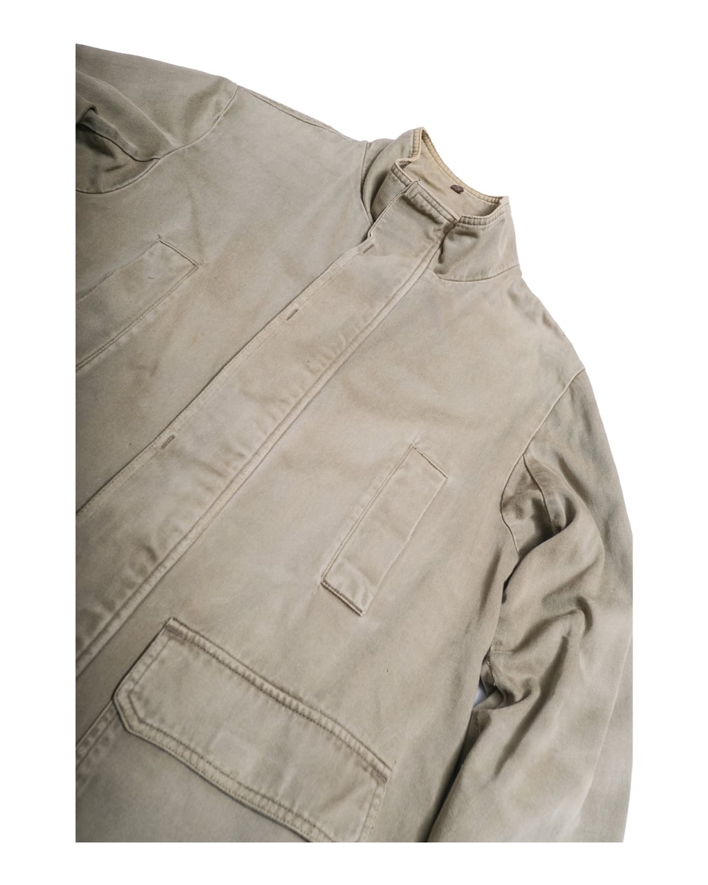 コンディション:B 【状態追記】・全体的にフェード・袖にダメージ SIZE L:着丈85.5cm,身幅58.5cm,肩幅45.5cm,袖丈66.5cm Color:Khaki ※古着という事をご理解の上ご注文よろしくお願いします。 ※店舗と在庫共有をしているため完売している場合がございます。 ※測定値の若干の誤差はご了承下さい。